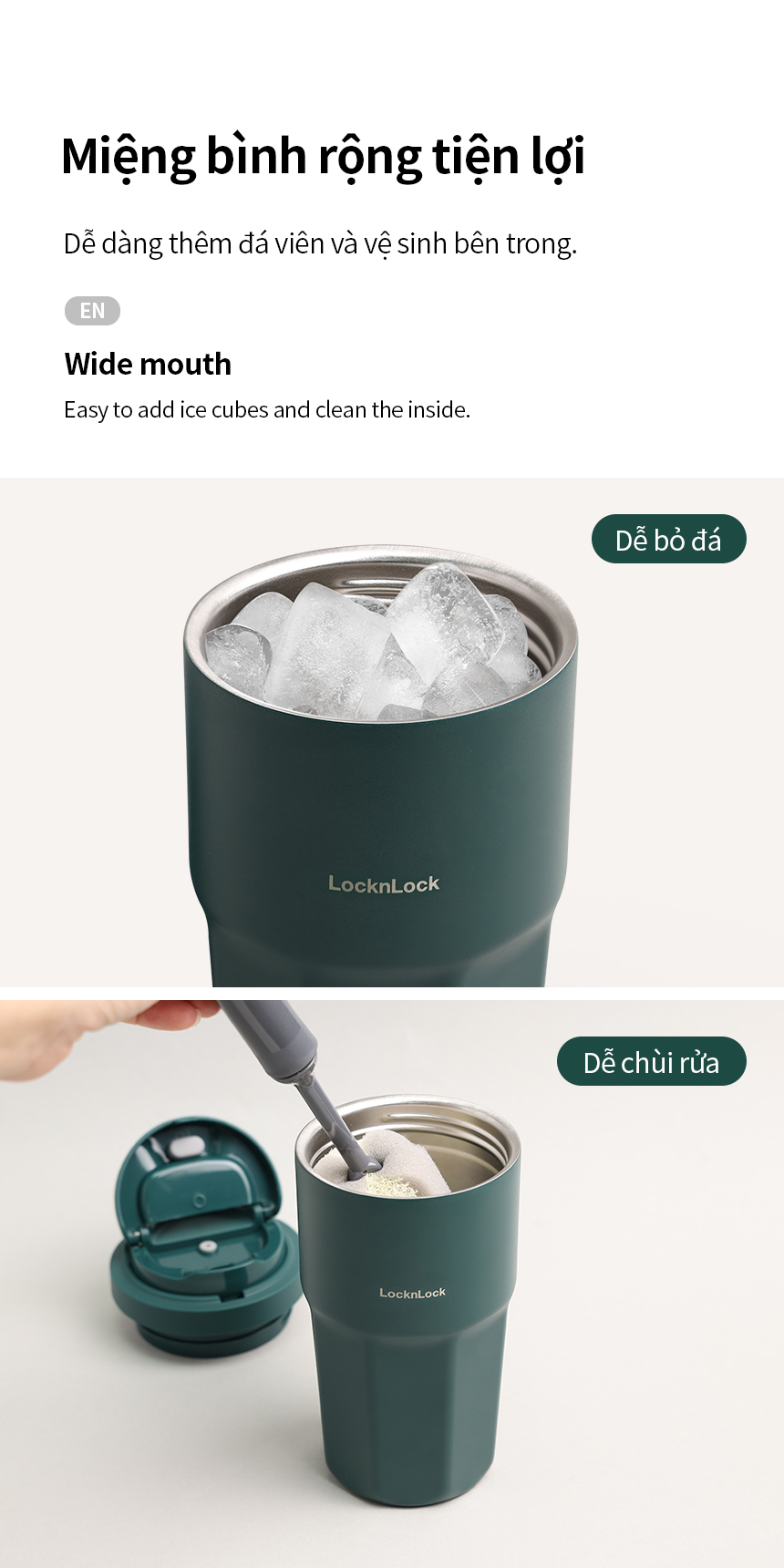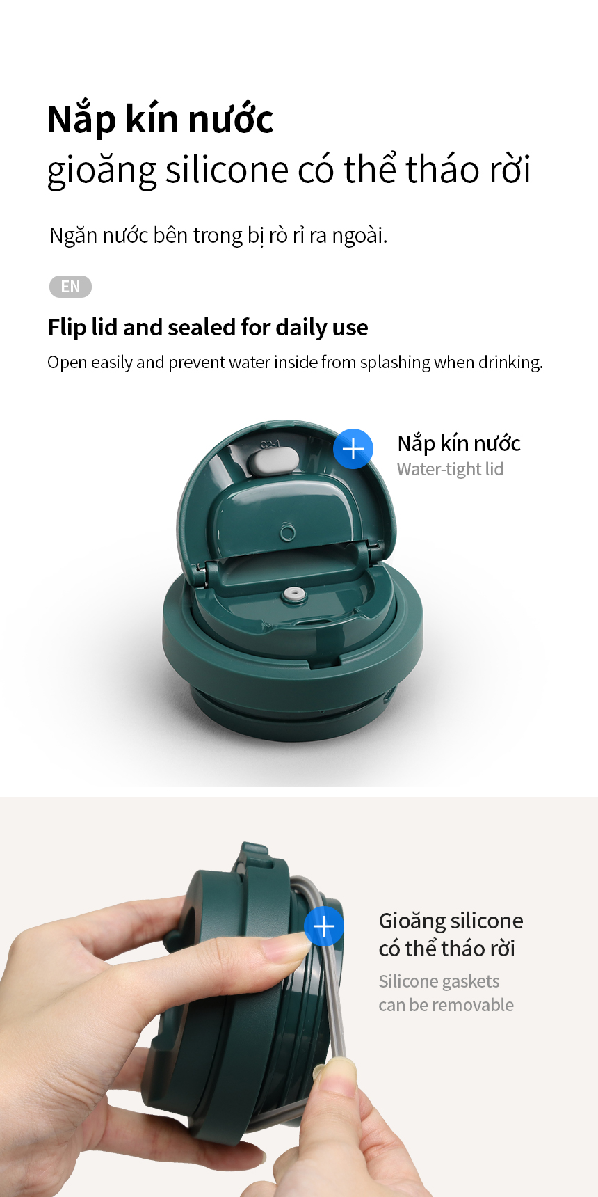 - Nắp 1 chạm: Đóng mở nắp dễ dàng bằng một tay, giúp bạn thưởng thức đồ uống vô cùng tiện lợi