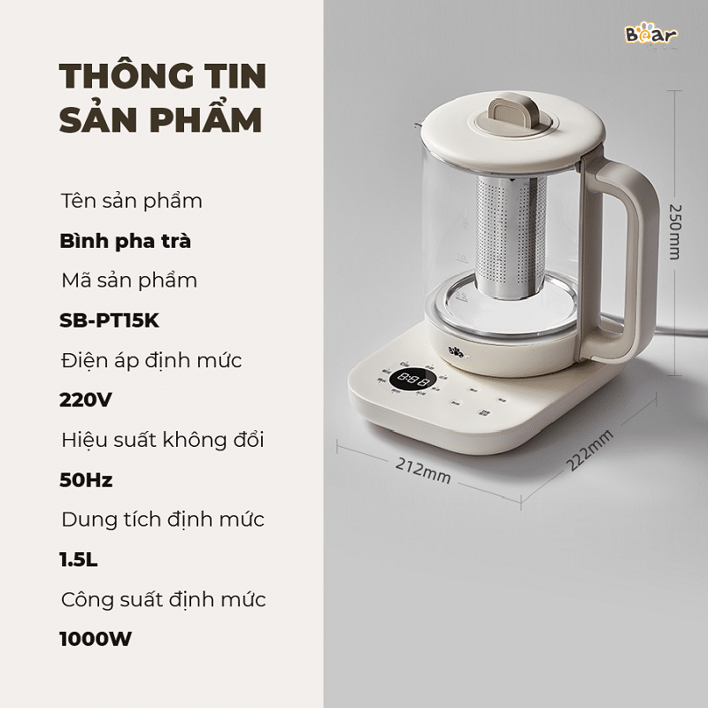 – Tên sản phẩm: Bình Pha Trà Giữ Nhiệt Bear SB-PT15K