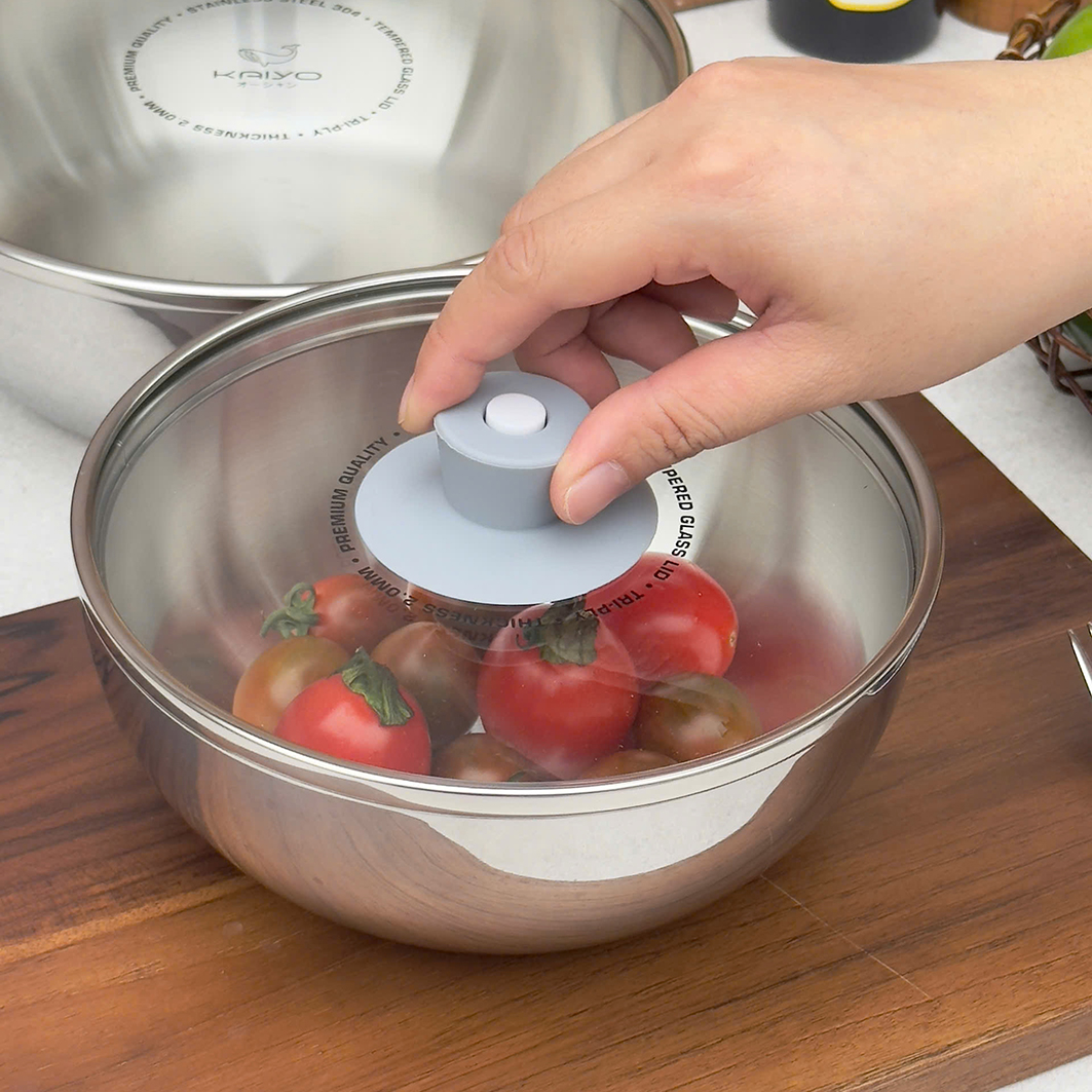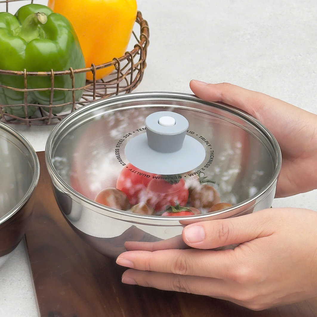 ✔️ Làm tô, âu trộn thực phẩm: trộn bột làm bánh, trộn nhân nem, làm tô đựng salad… có nắp kính tiện ủ và vệ sinh luôn