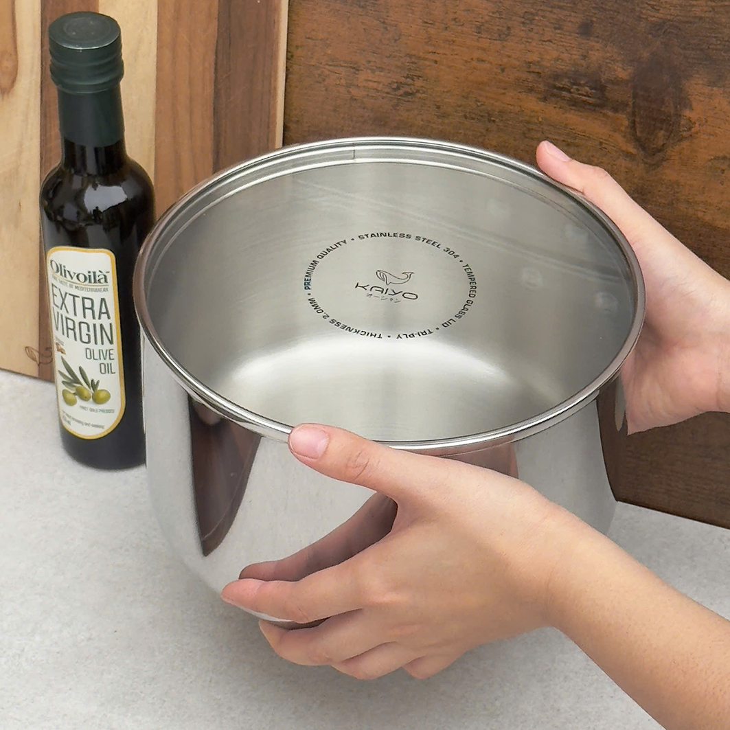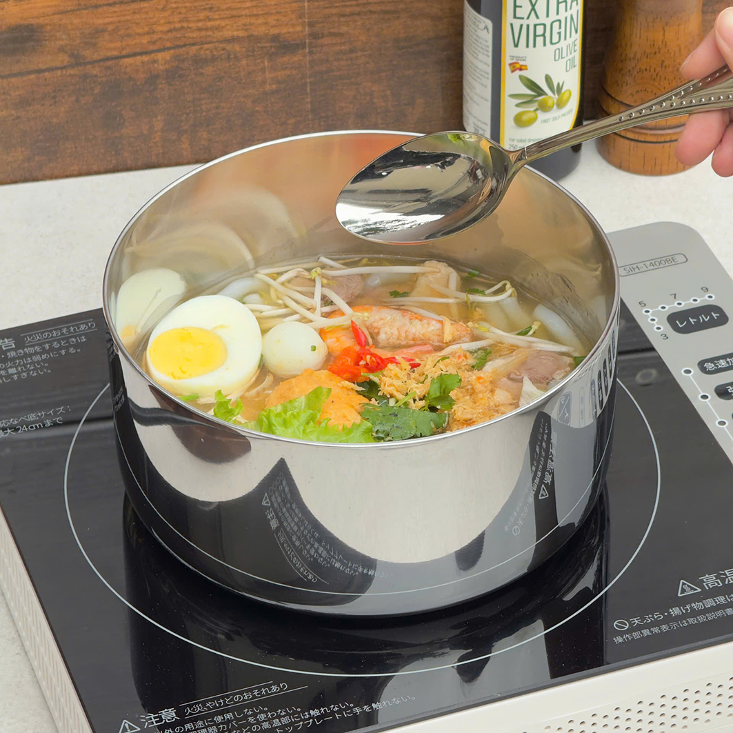 Hàng inox 18/10 dòng Triply 3 lớp liền khối quá xịn sò. Xếp gọn lại cất đi cực kỳ tiết kiệm diện tích. Chất lượng Nhật Bản nét lừ ko có điểm chê ạ