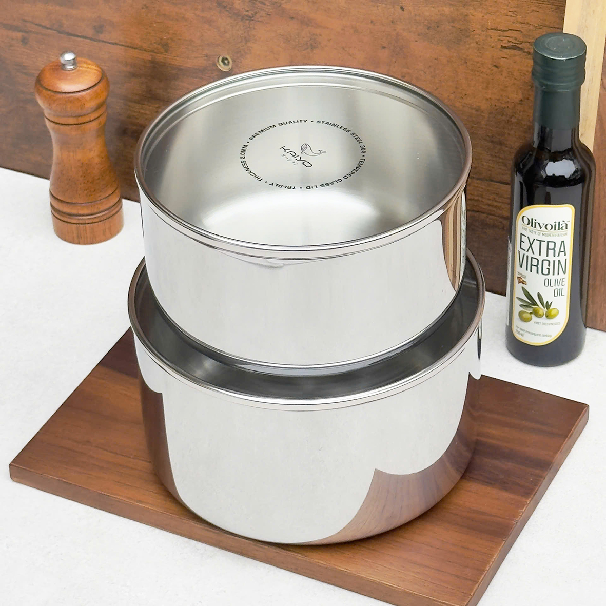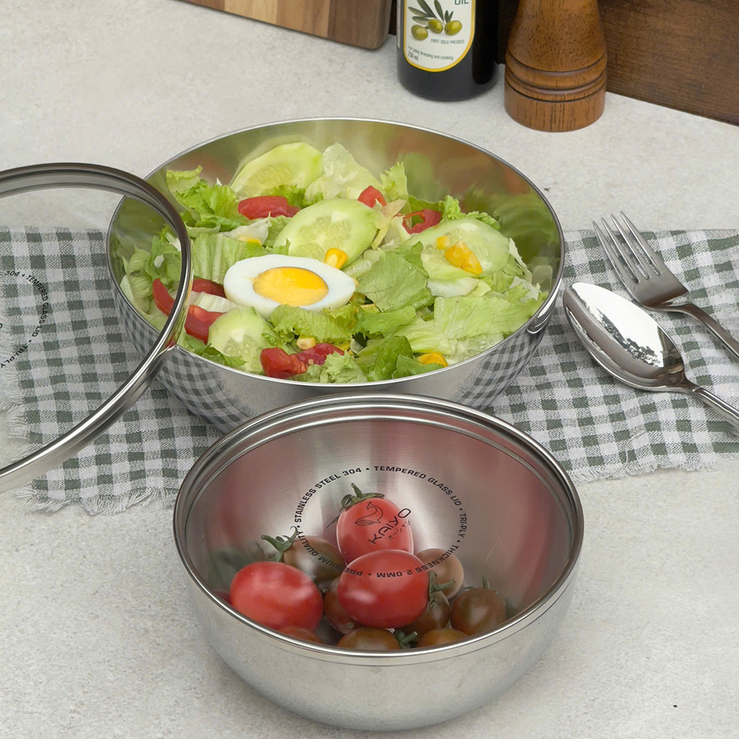 Bộ 2 âu đựng thực phẩm inox 316 Kaiyo có vung kiêm chức năng nồi