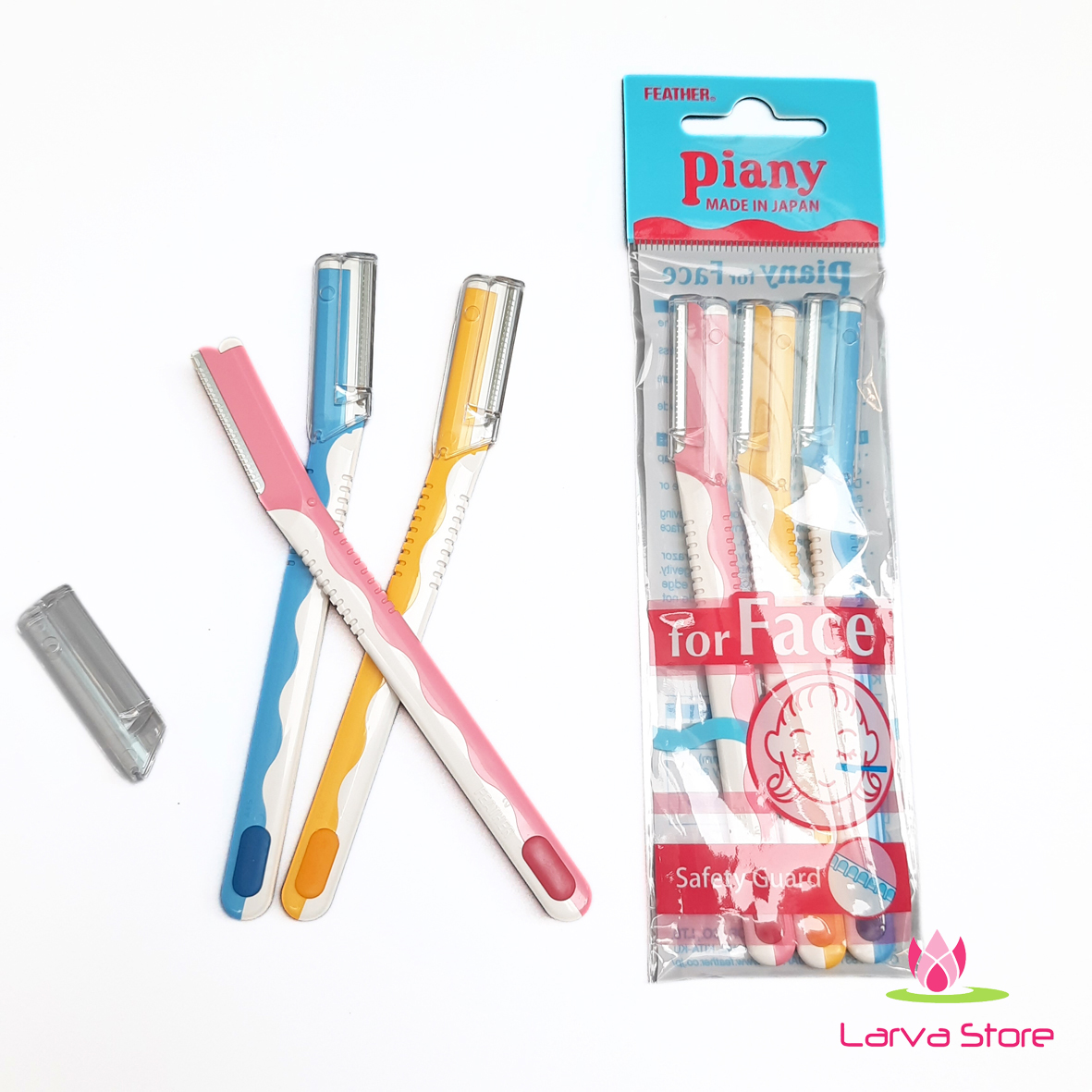Bộ 3 Dao Cạo Lông Mày, Lông Mặt FEATHER Piany Nhật Bản Có Lớp Bảo Vệ