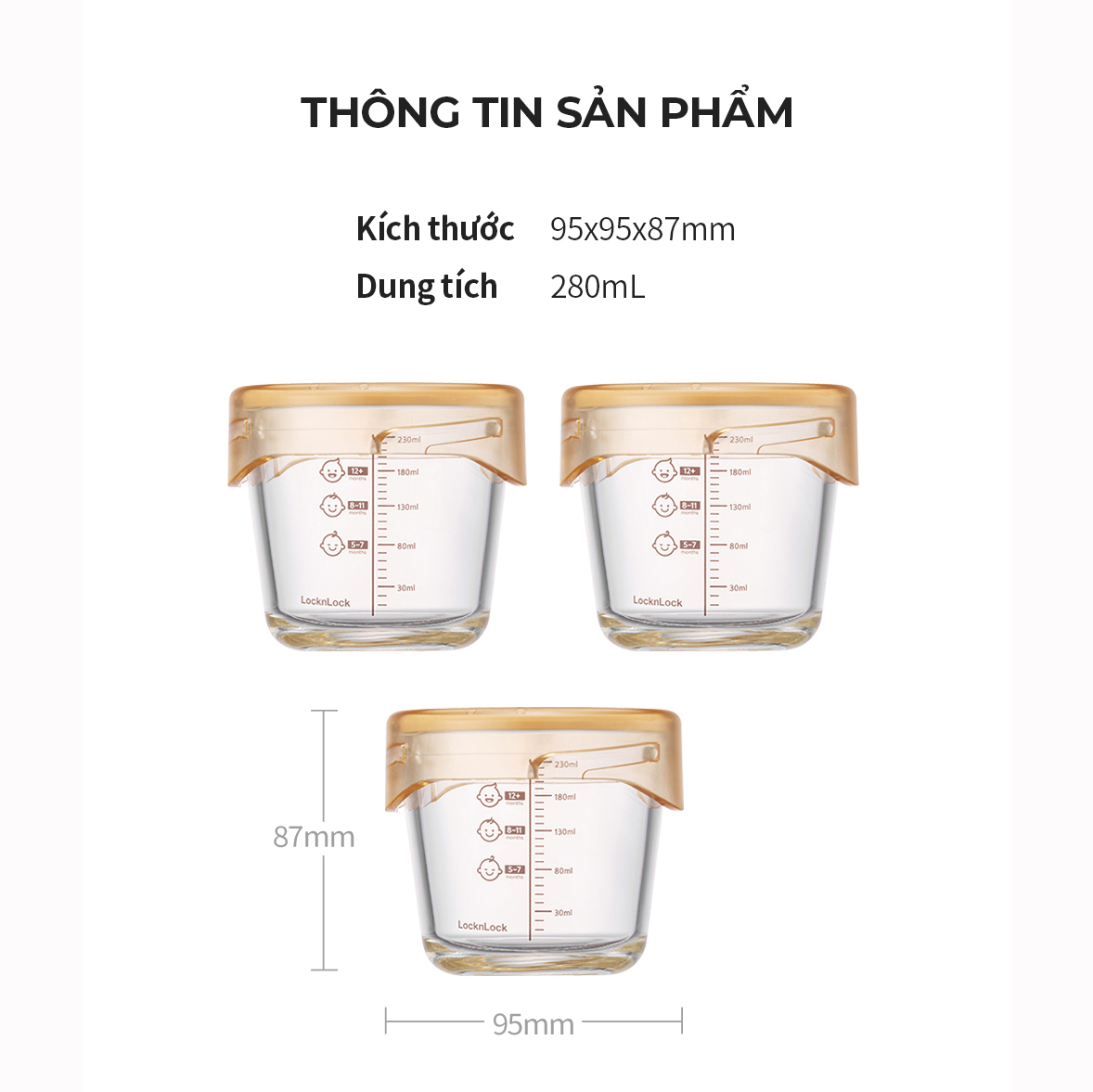 Bộ 3 hộp thủy tinh 280ml LocknLock đựng đồ ăn cho bé LLG542S03 280ml chia vạch