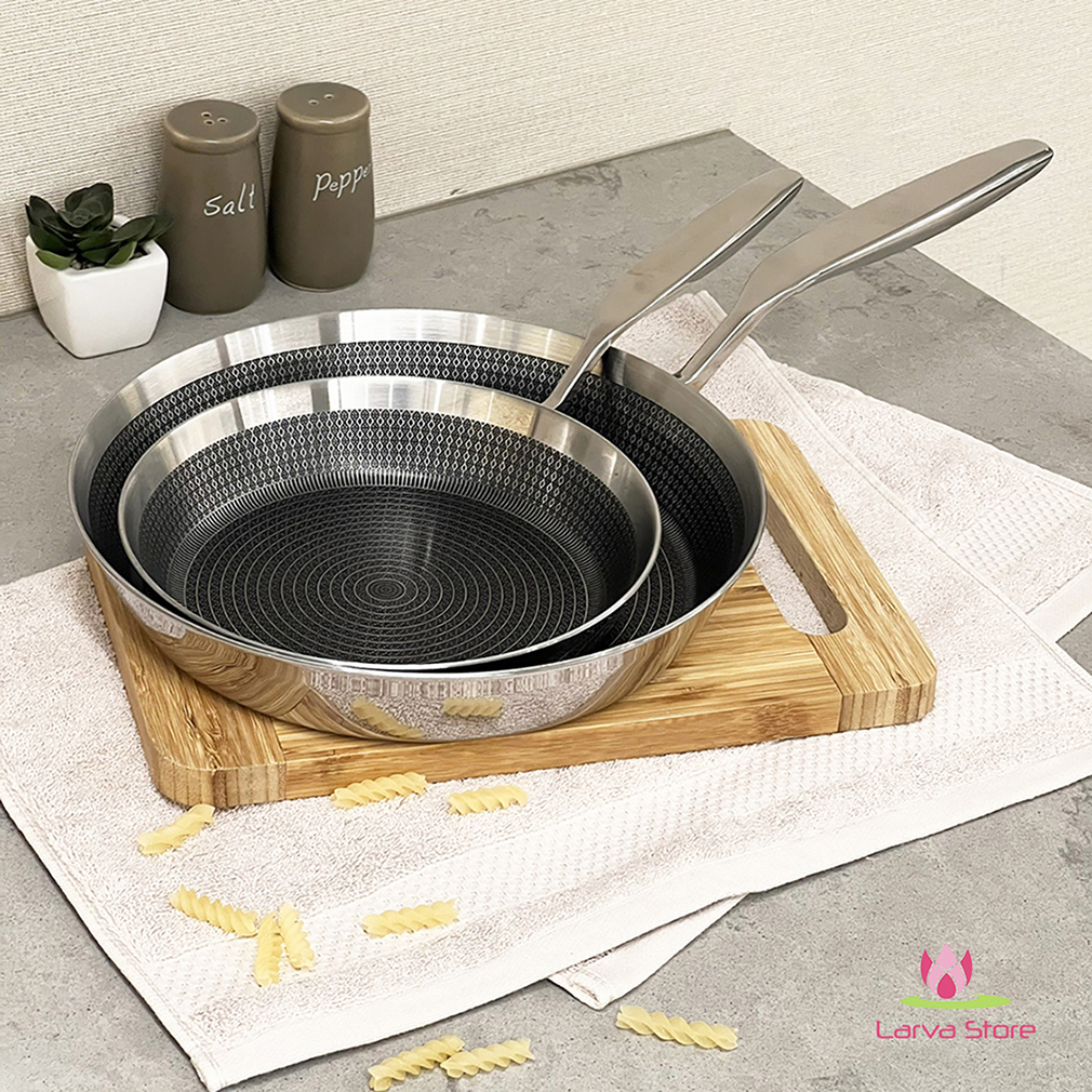 Chảo đúc inox chống dính hoa văn nổi 3 lớp đáy liền Tri-Ply Kaiyo (Chảo nông)