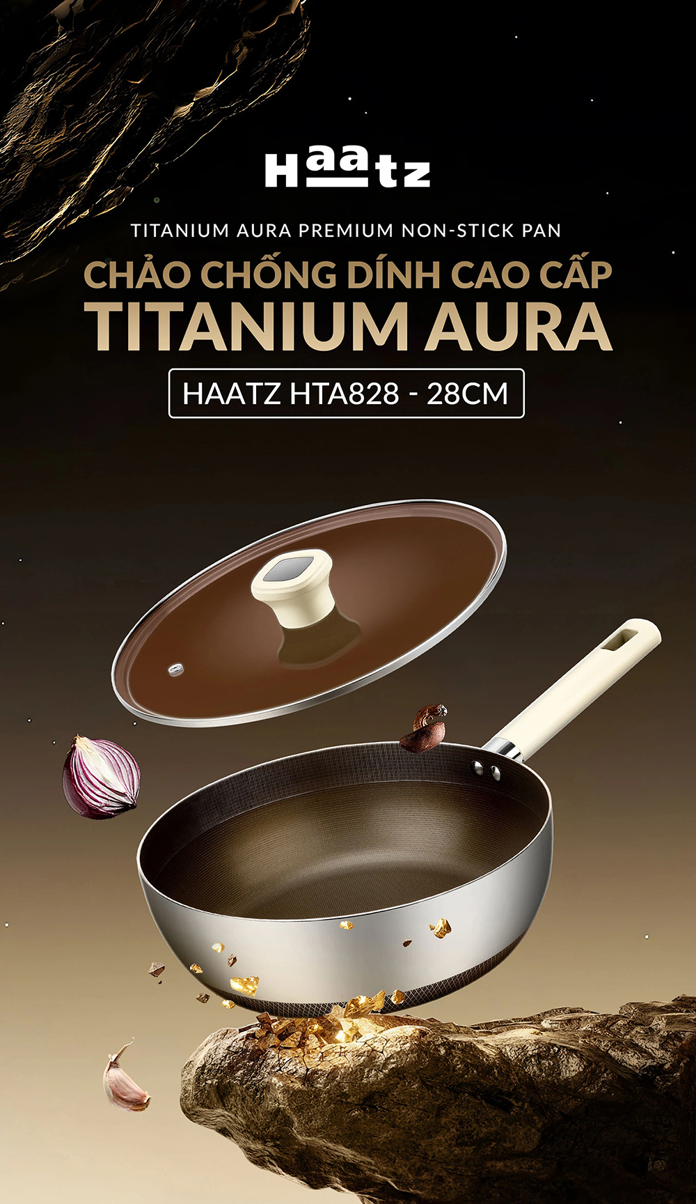 Chảo siêu chống dính Haatz Titanium Aura sâu lòng inox 316 đáy 7 lớp phủ chống dính titanium