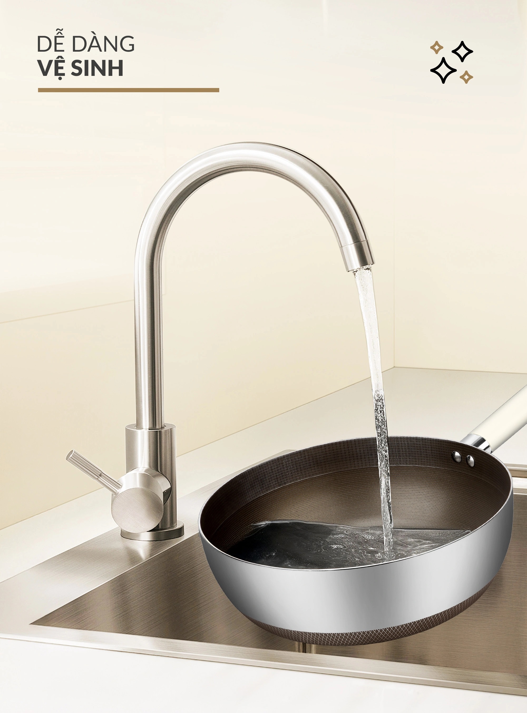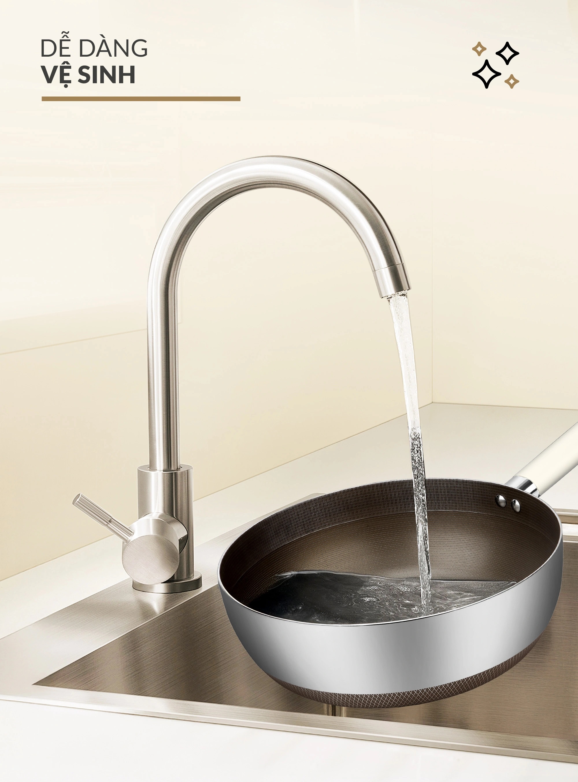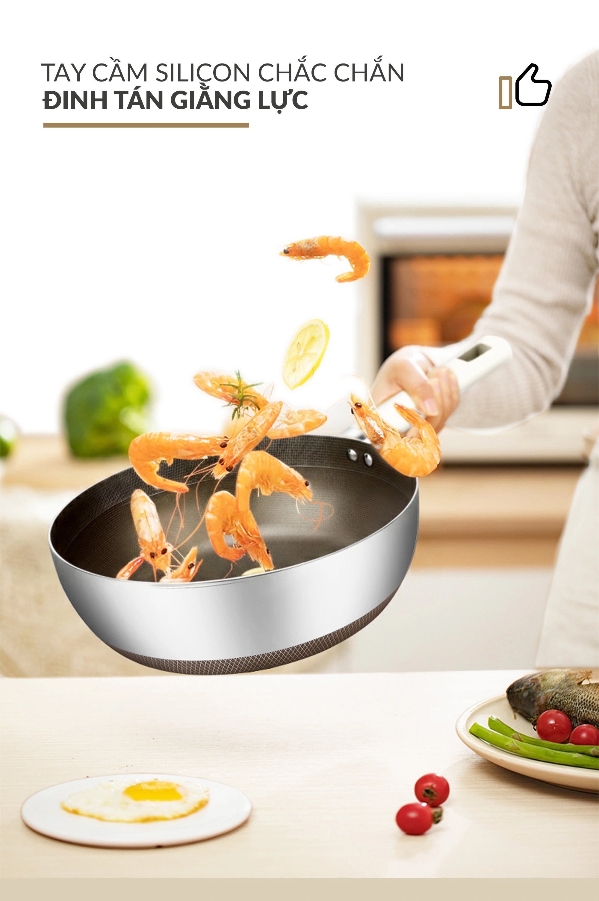 - Lớp phủ Titanium Aura sinh học: Chống dính bền vững, không bong tróc, giảm 50% dầu mỡ khi nấu