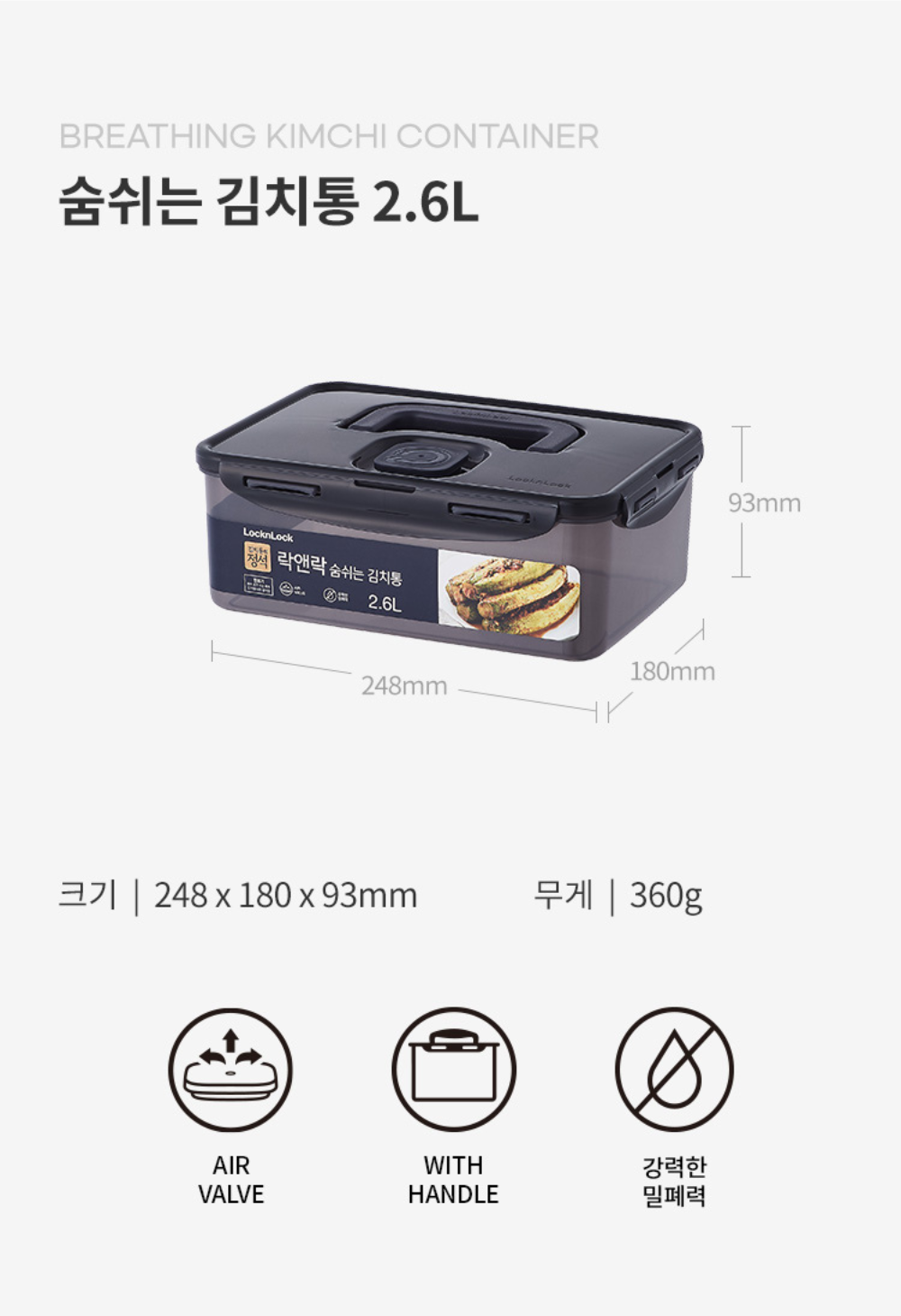 Hộp muối kim chi LocknLock Breathing HPL827BDG - 4.5L | HPL826BDG - 2.6L