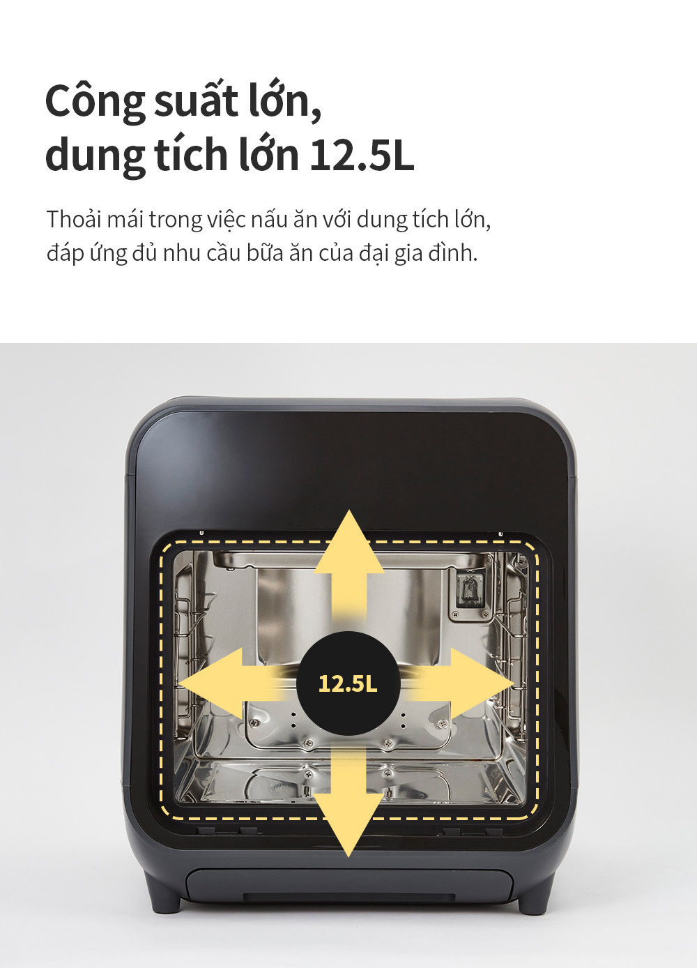 - Dung tích lớn: Dung tích 12.5L phù hợp phục vụ các bữa ăn quy mô gia đình