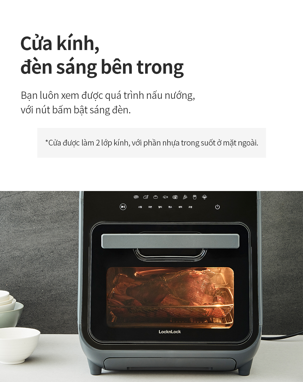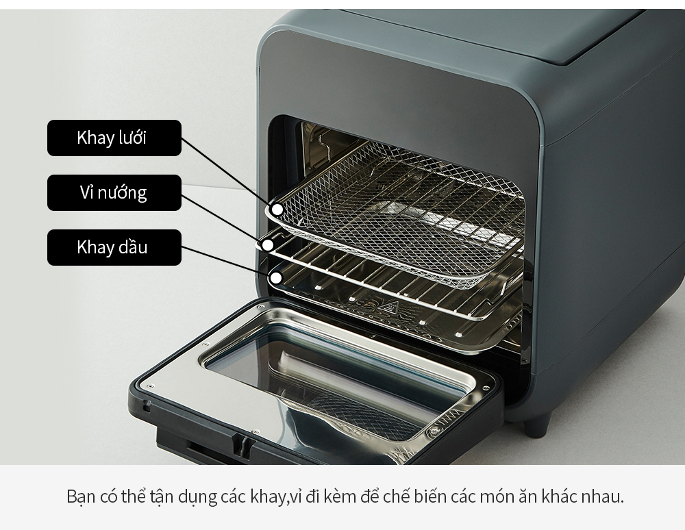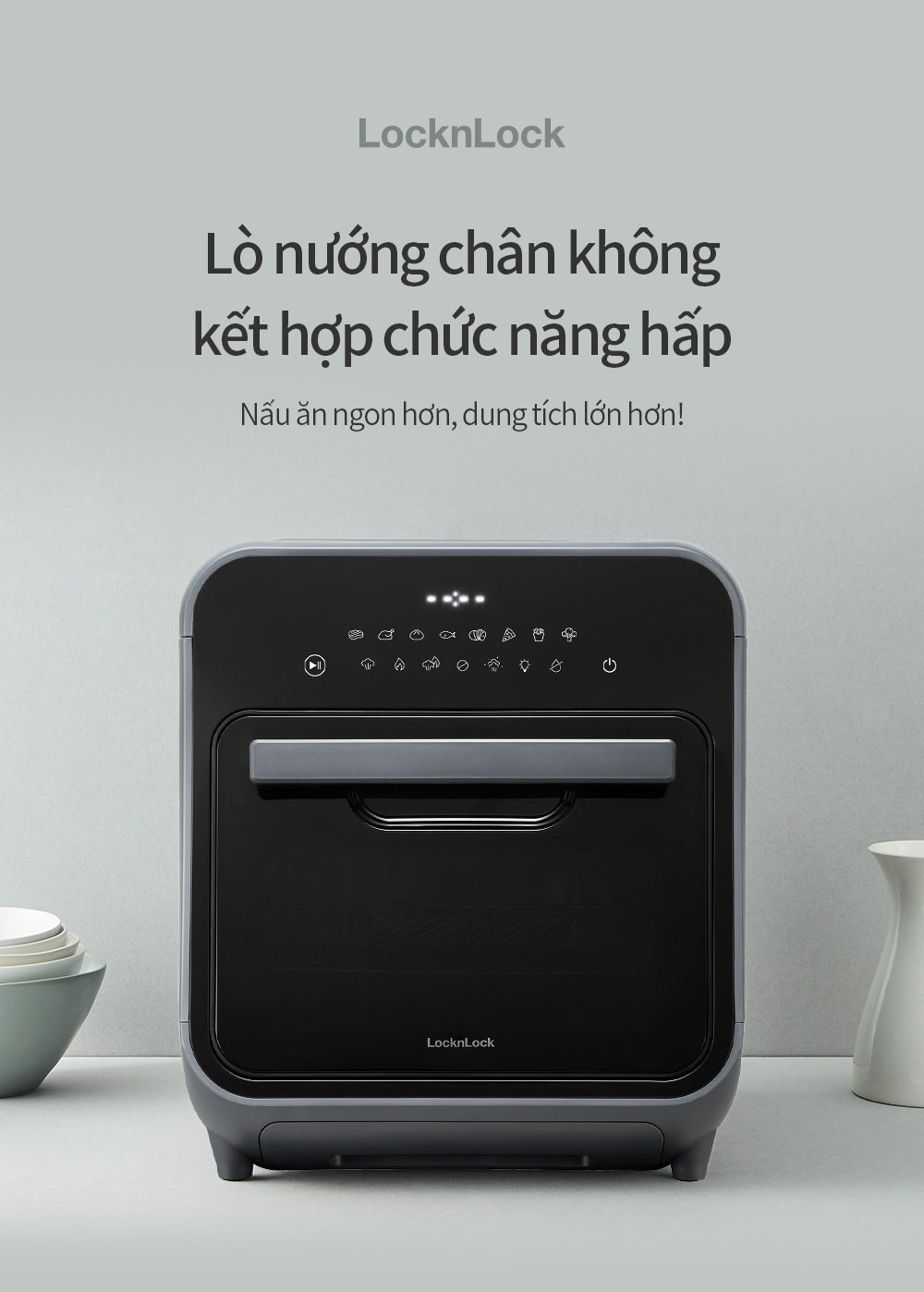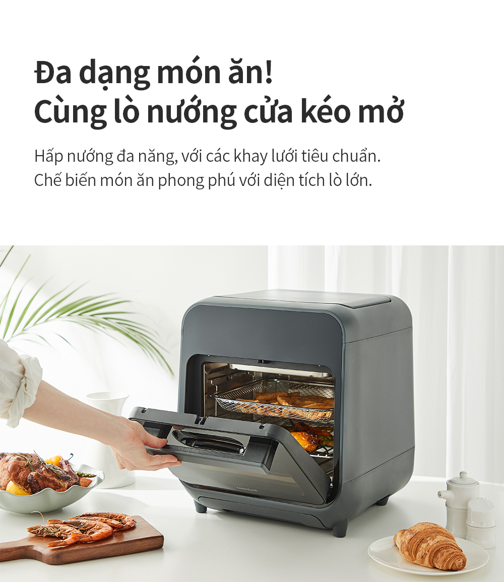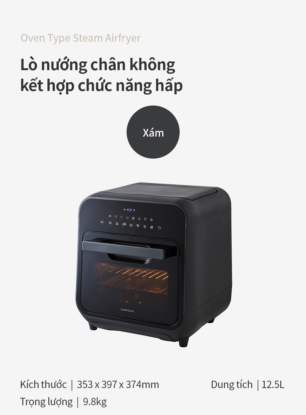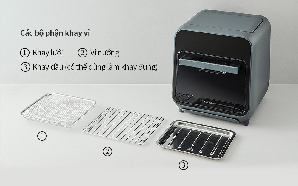 Lò nướng chân không kết hợp chức năng hấp LockLnLock Steam Air Fryer Oven 12.5 Lít EJF693GRY