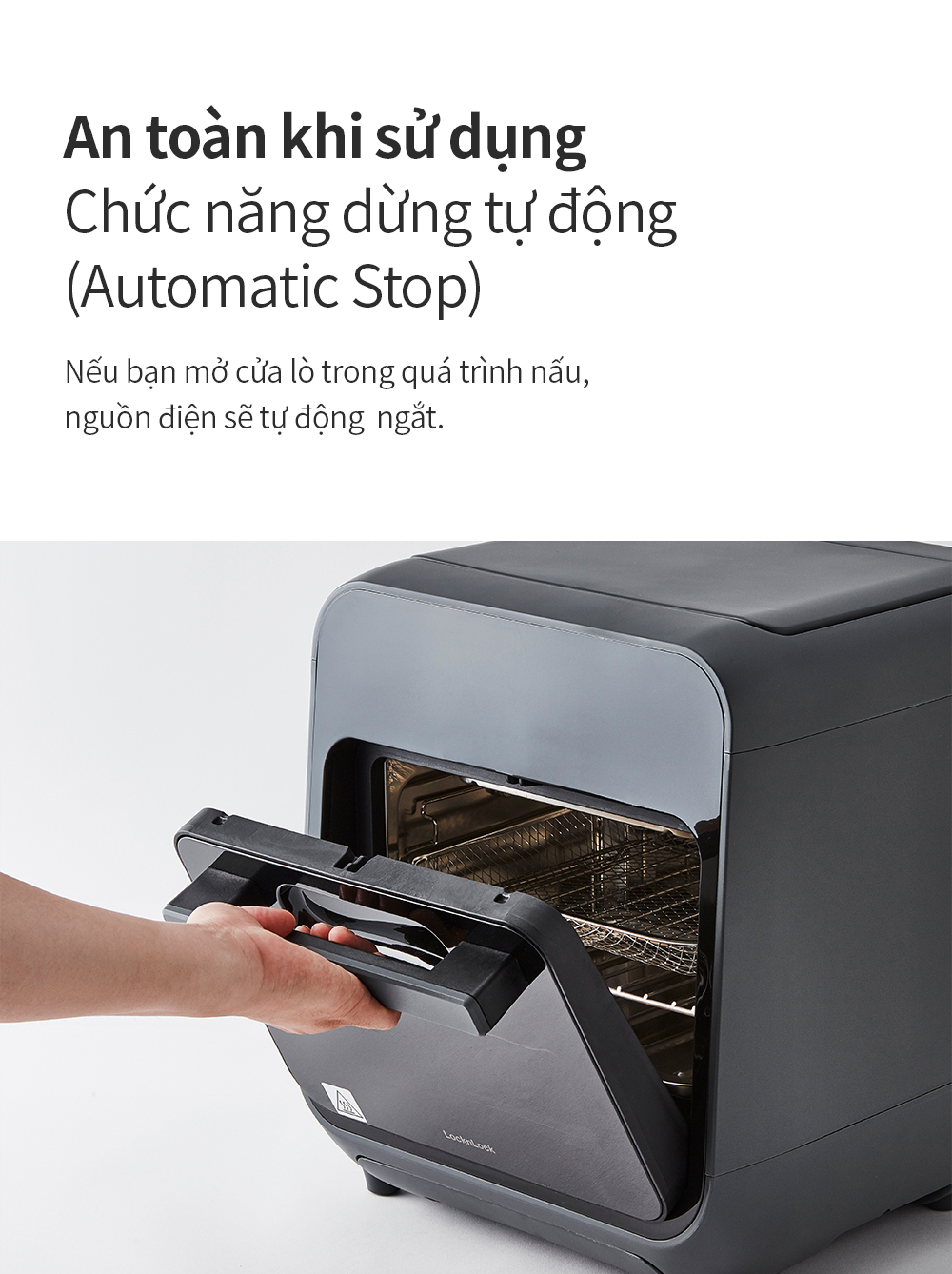 - Tự động ngắt kết nối: Lò nướng sẽ tự động tắt khi mở cửa lò trong quá trình nấu.