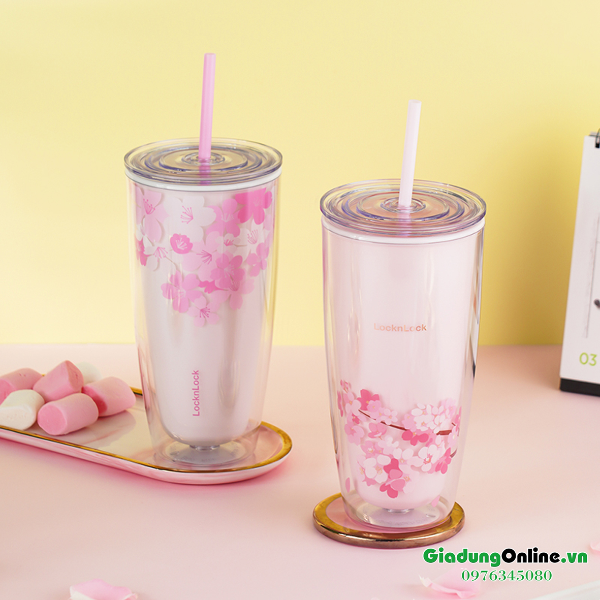 Ly Nhựa 2 lớp LocknLock HAP509 750ml kèm ống hút