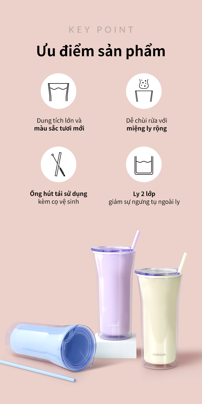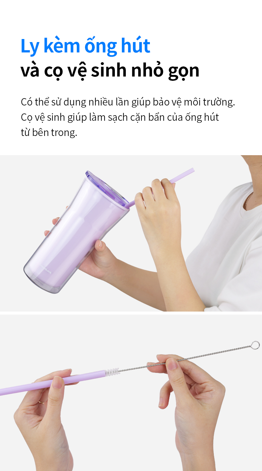 - ỐNG HÚT VÀ CỌ VỆ SINH: Ống hút có thể tái sử dụng kèm cọ vệ sinh mang đến sự tiện lợi khi sử dụng bình.