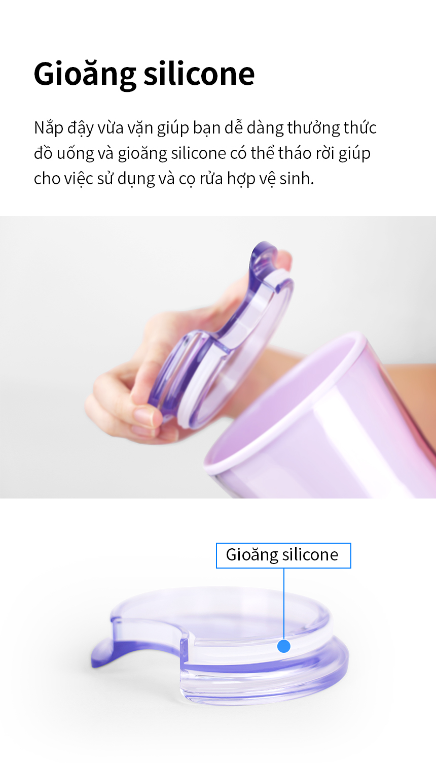 - TIỆN LỢI VÀ SỬ DỤNG HỢP VỆ SINH: Nắp đậy vừa vặn giúp bạn dễ dàng thưởng thức đồ uống và gioăng silicone có thể tháo rời giúp cho việc sử dụng và cọ rửa hợp vệ sinh.
