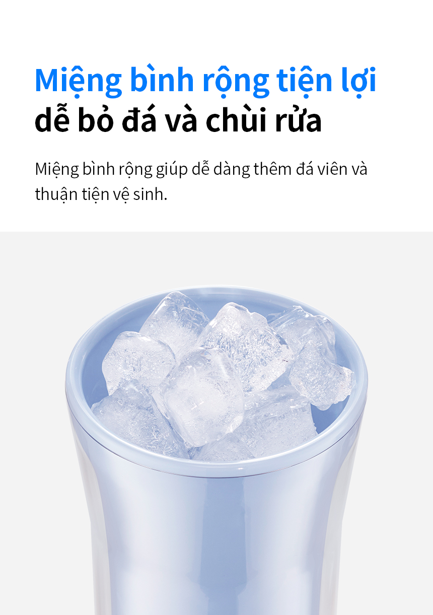 - MIỆNG BÌNH RỘNG: Miệng bình rộng giúp dễ dàng thêm đá viên và thuận tiện vệ sinh.