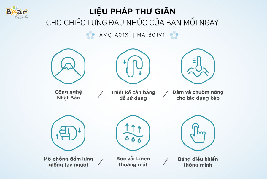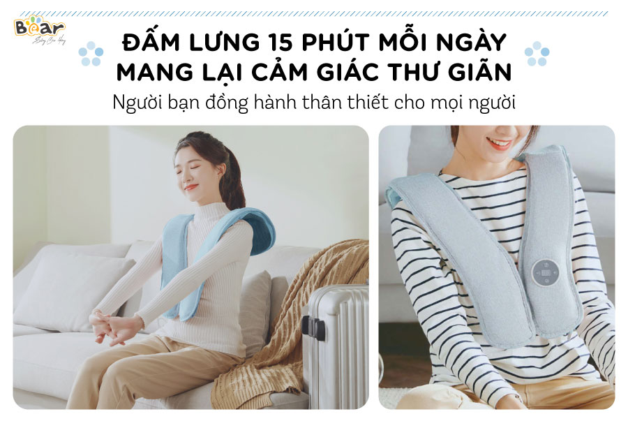 Bạn đau lưng khi làm việc và ngồi quá lâu? Cha mẹ cao tuổi, thường bị đau lưng, vai, gáy. Máy đấm lưng Bear là giải pháp hiệu quả trong việc chăm sóc khỏe cho cả gia đình.
