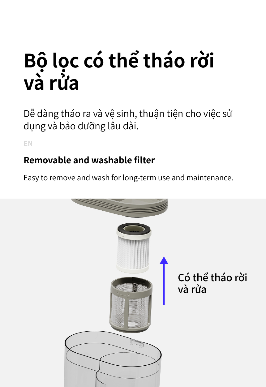 ✦ BỘ LỌC CÓ THỂ THÁO RỜI VÀ RỬA: Dễ dàng tháo ra và vệ sinh, thuận tiện cho việc sử dụng và bảo dưỡng lâu dài.
