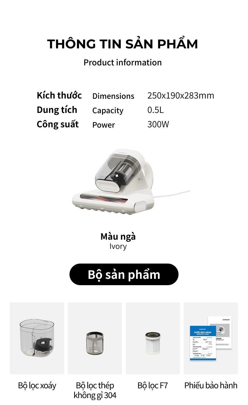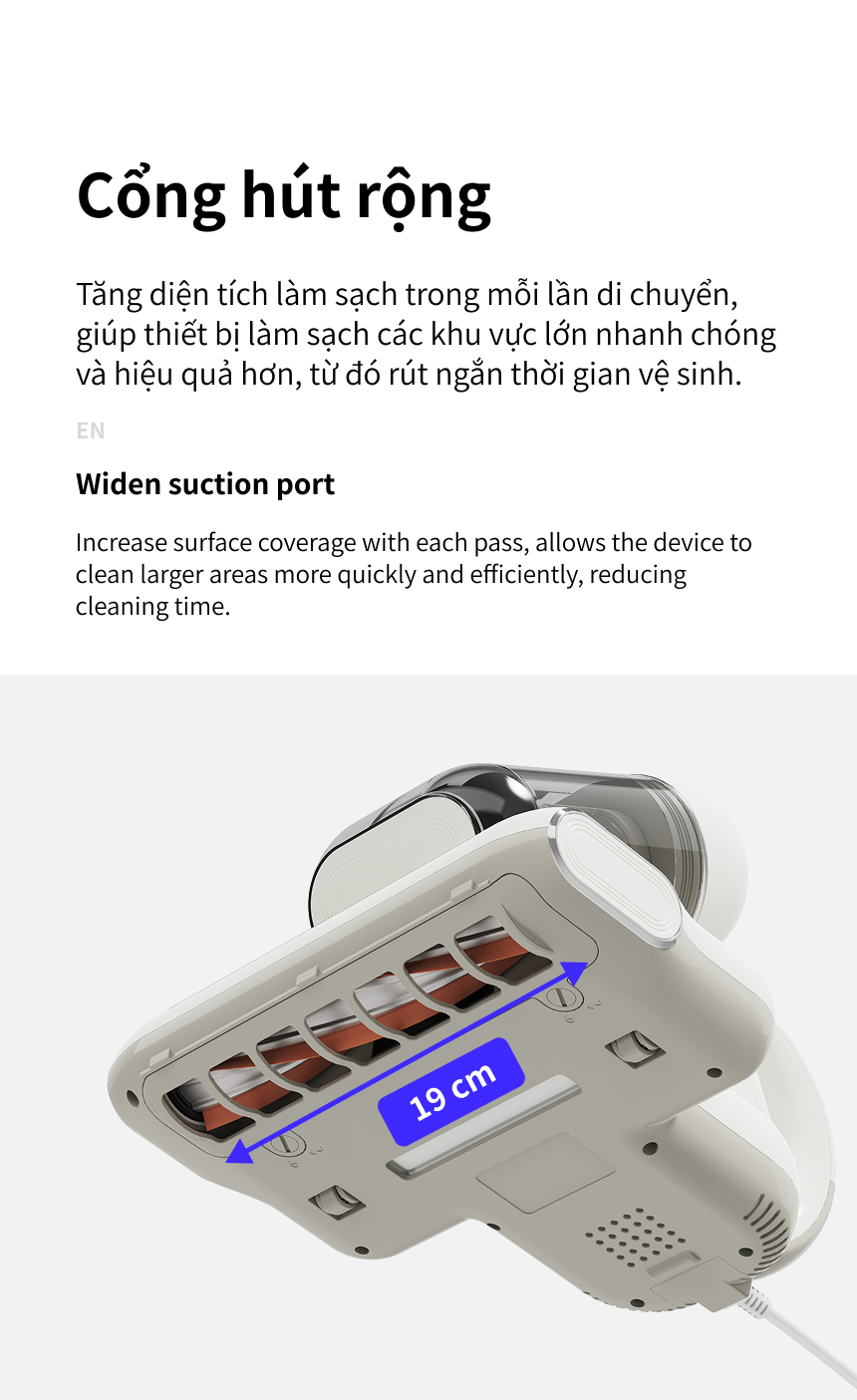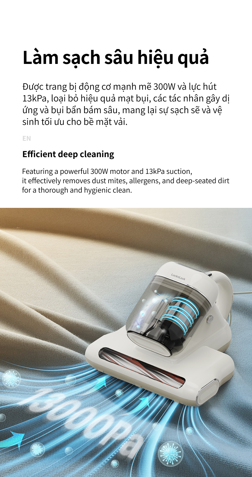 ✦ LÀM SẠCH SÂU HIỆU QUẢ: Được trang bị động cơ mạnh mẽ 300W và lực hút 13kPa, máy hút bụi giường nệm loại bỏ hiệu quả mạt bụi, các tác nhân gây dị ứng và bụi bẩn bám sâu, mang lại sự sạch sẽ và vệ sinh tối ưu cho bề mặt vải.