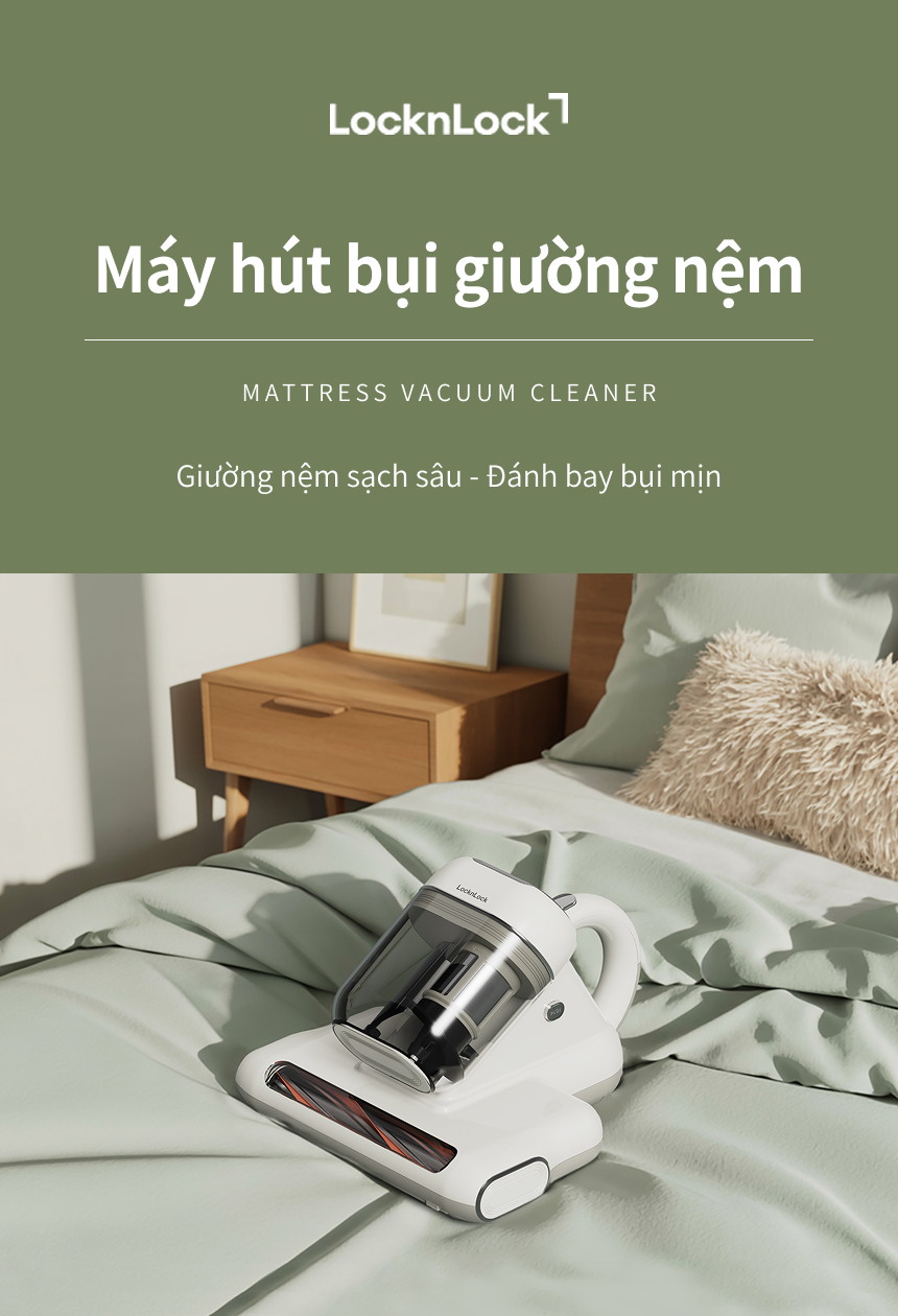 Máy hút bụi giường nệm LocknLock Mattress vacuum cleaner ENV818IVY khử trùng bằng tia UV - Màu ngà