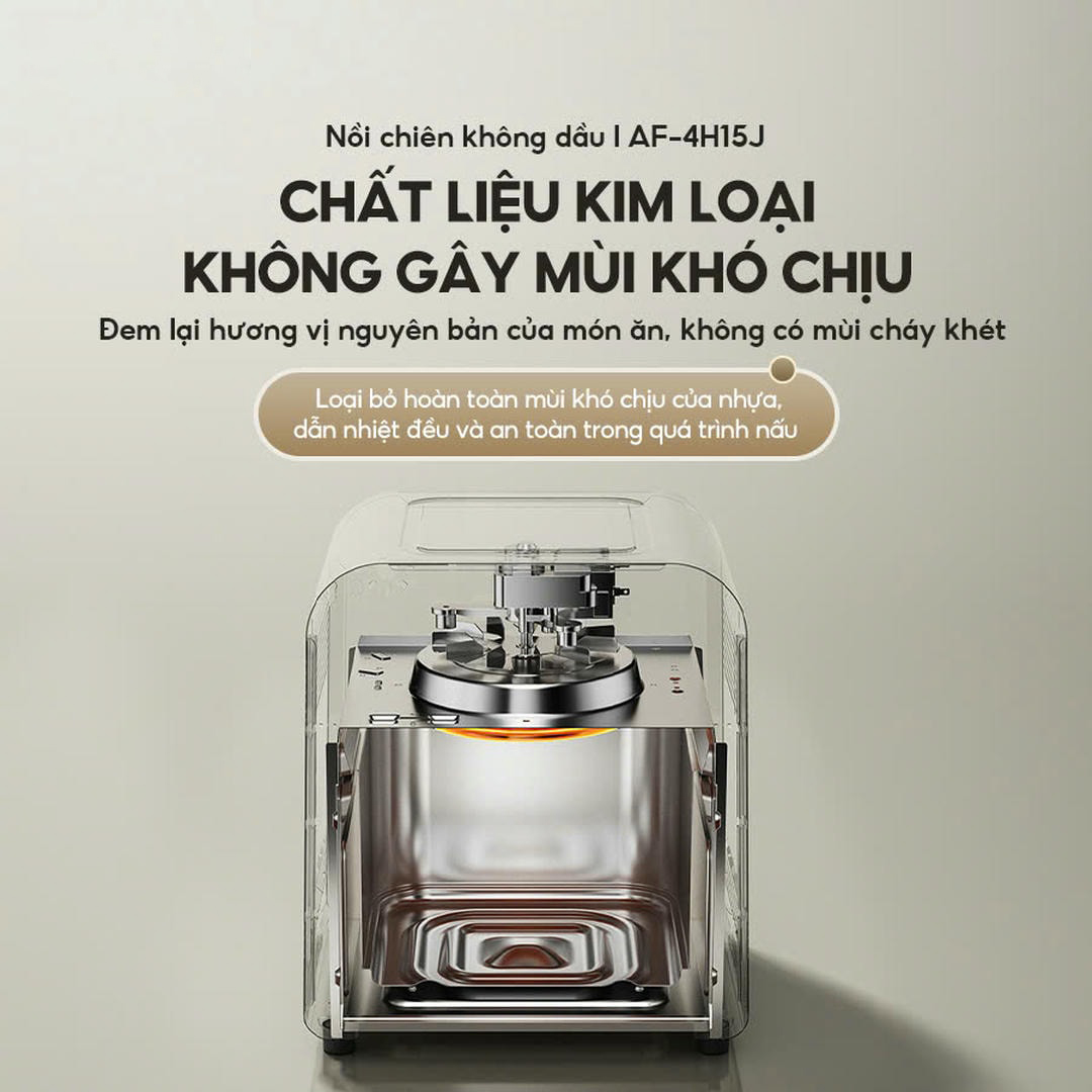 - Chất liệu kim loại từ trong ra ngoài, chiên ở nhiệt độ cao mà không lo biến dạng