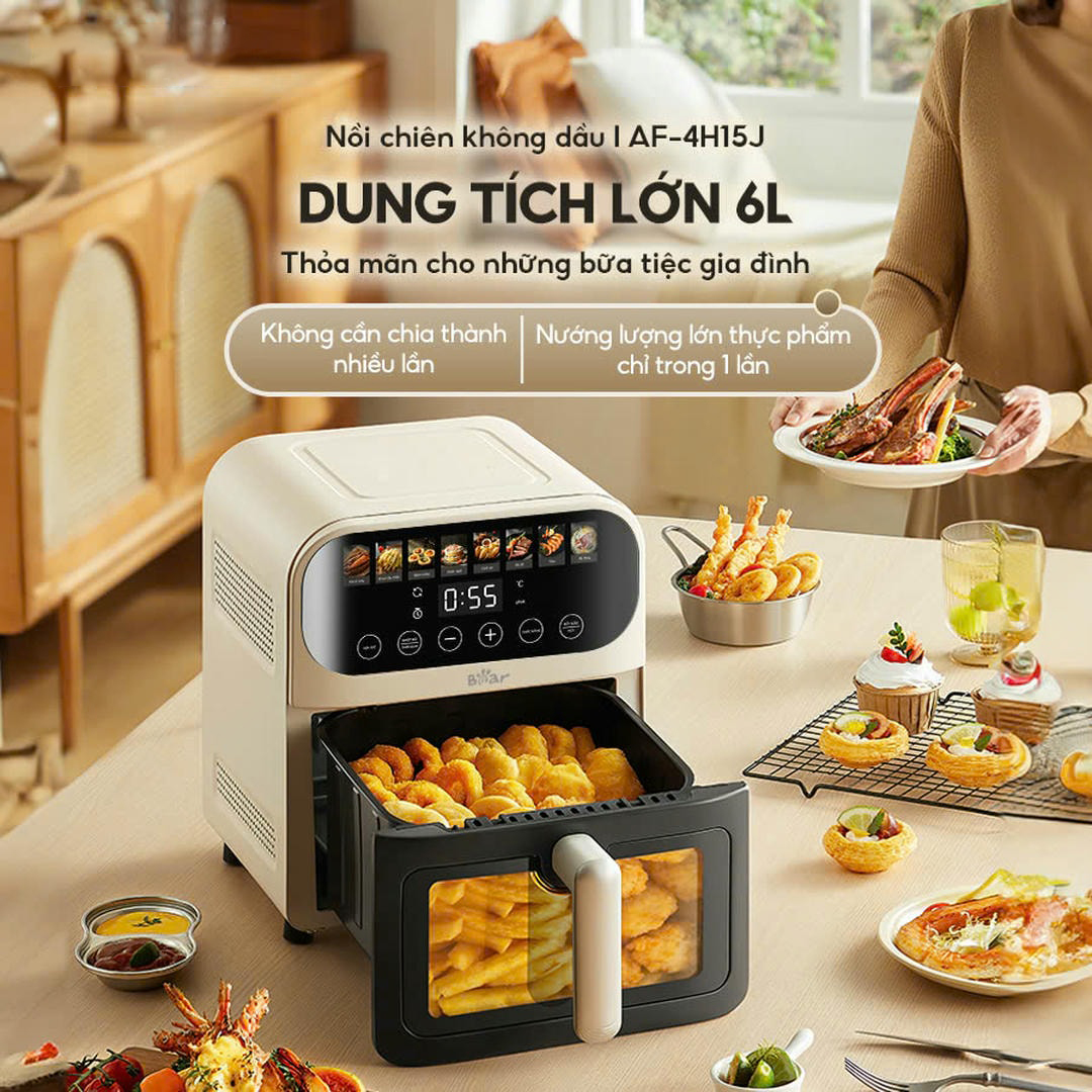 Đồ gia dụng Bear quá nổi tiếng với dòng nồi chiên không dầu trong nhiều năm qua. Đến sản phẩm AF-4H15J, Bear tiếp tục chinh phục khách hàng với nhiều ưu điểm nổi bật: Chiên nhanh – Bền – đa chức năng.