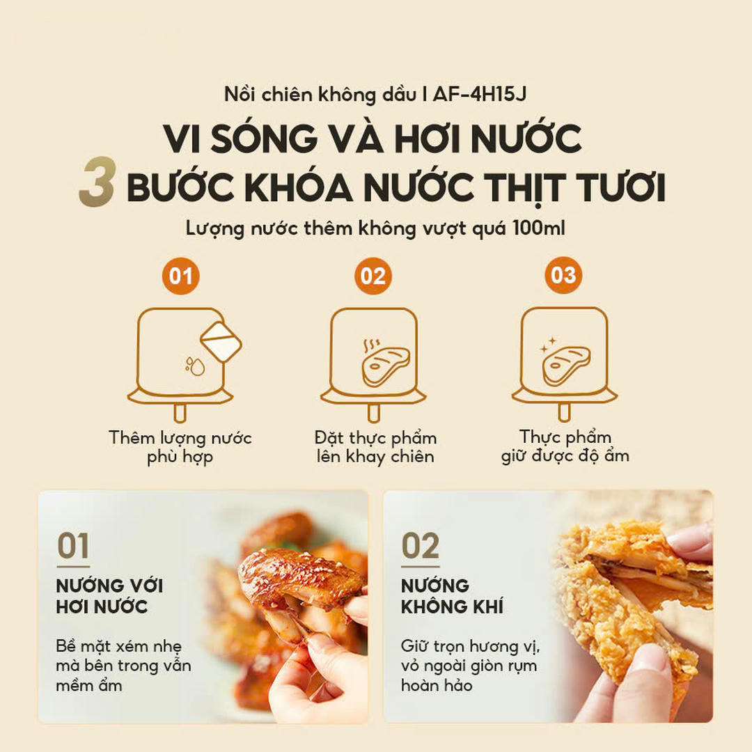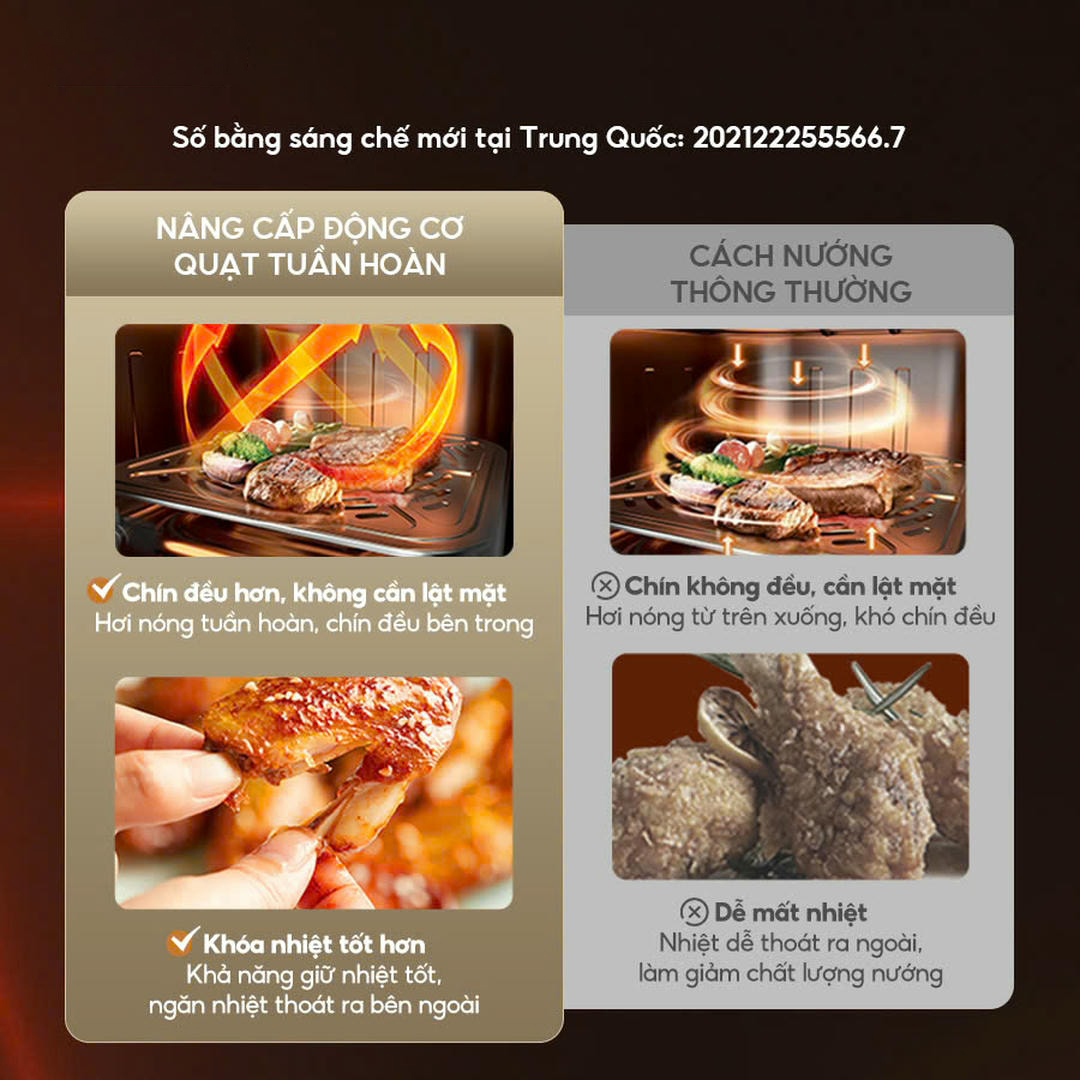 - Chín đều hơn, không cần lật mặt: Hơi nóng tuần hoàn, chín đều bên trong.