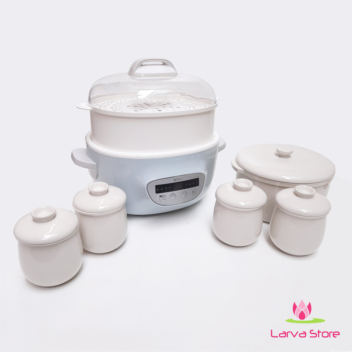 Nồi Nấu Cháo Chậm, Chưng Yến Bear SUBE003 2.5L (5 Thố Sứ Và Xửng Hấp)
