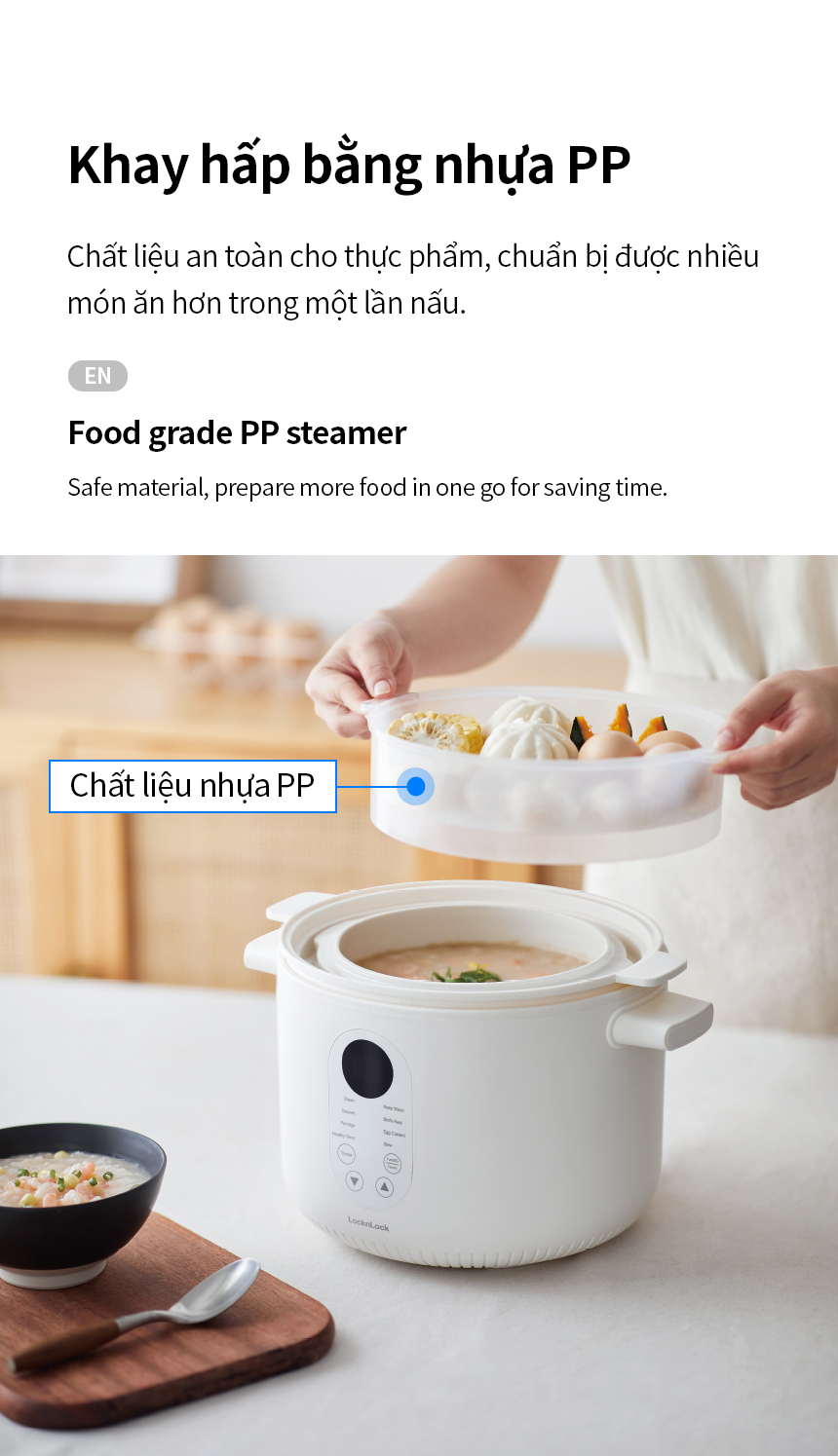 ➤ KHAY HẤP BẰNG NHỰA PP: Chất liệu an toàn cho thực phẩm, chuẩn bị được nhiều món ăn hơn trong một lần nấu