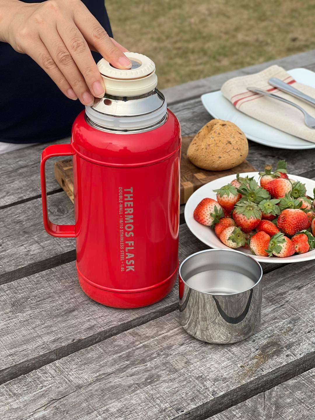 - Phần nắp bằng inox có thể dùng làm cốc uống nước