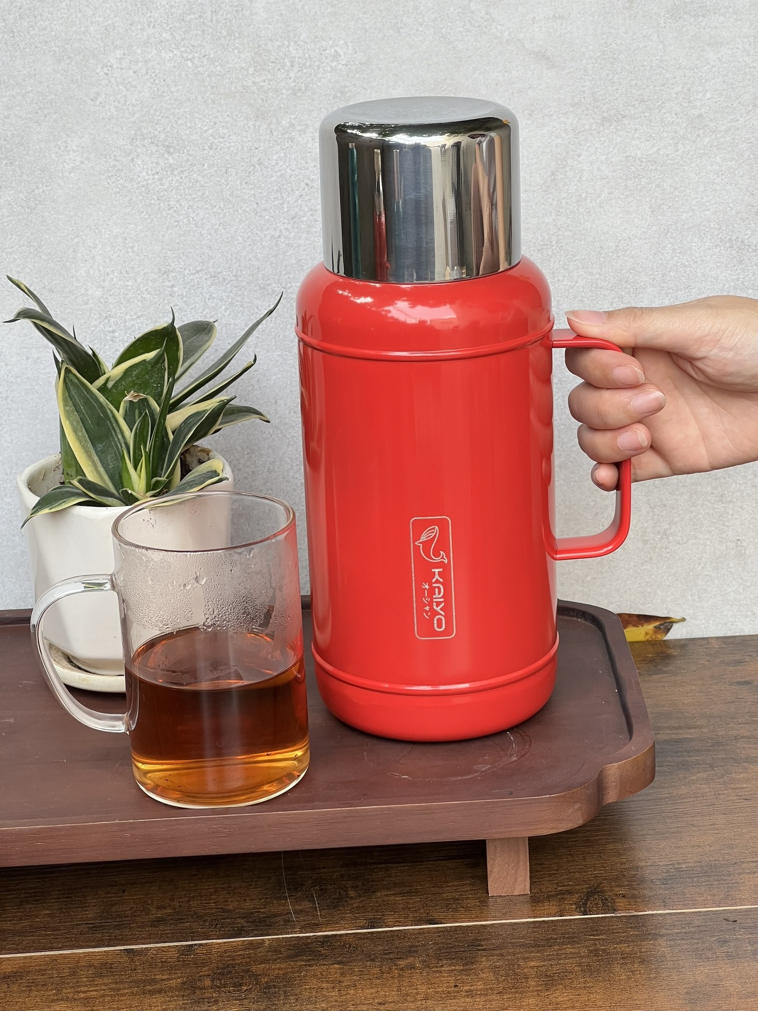 ✔️ Phích giữ nhiệt inox Kaiyo được sản xuất bằng chất liệu inox 304 với công nghệ giữ nhiệt chân không 2 lớp, mở/đóng nắp 1 chạm, nắp vặn xoáy với gioăng silicone bền chắc