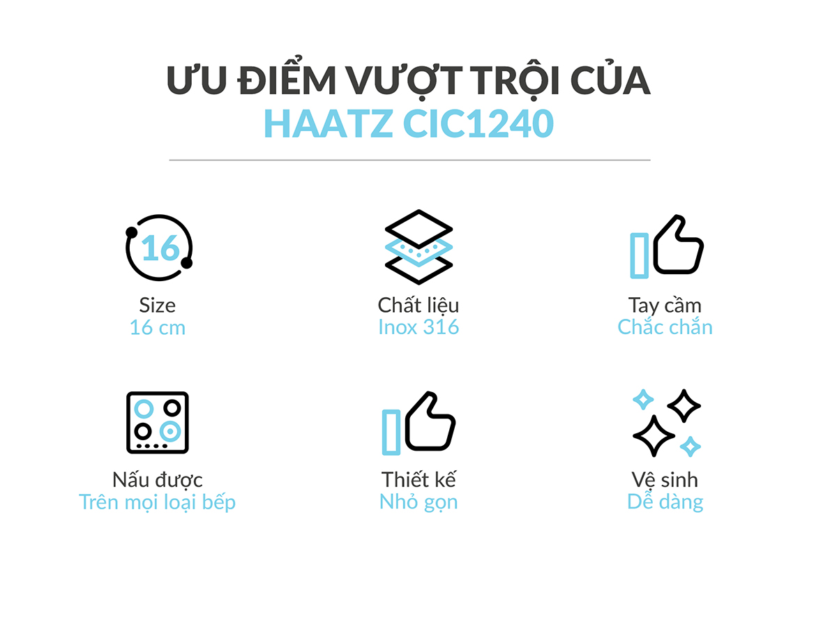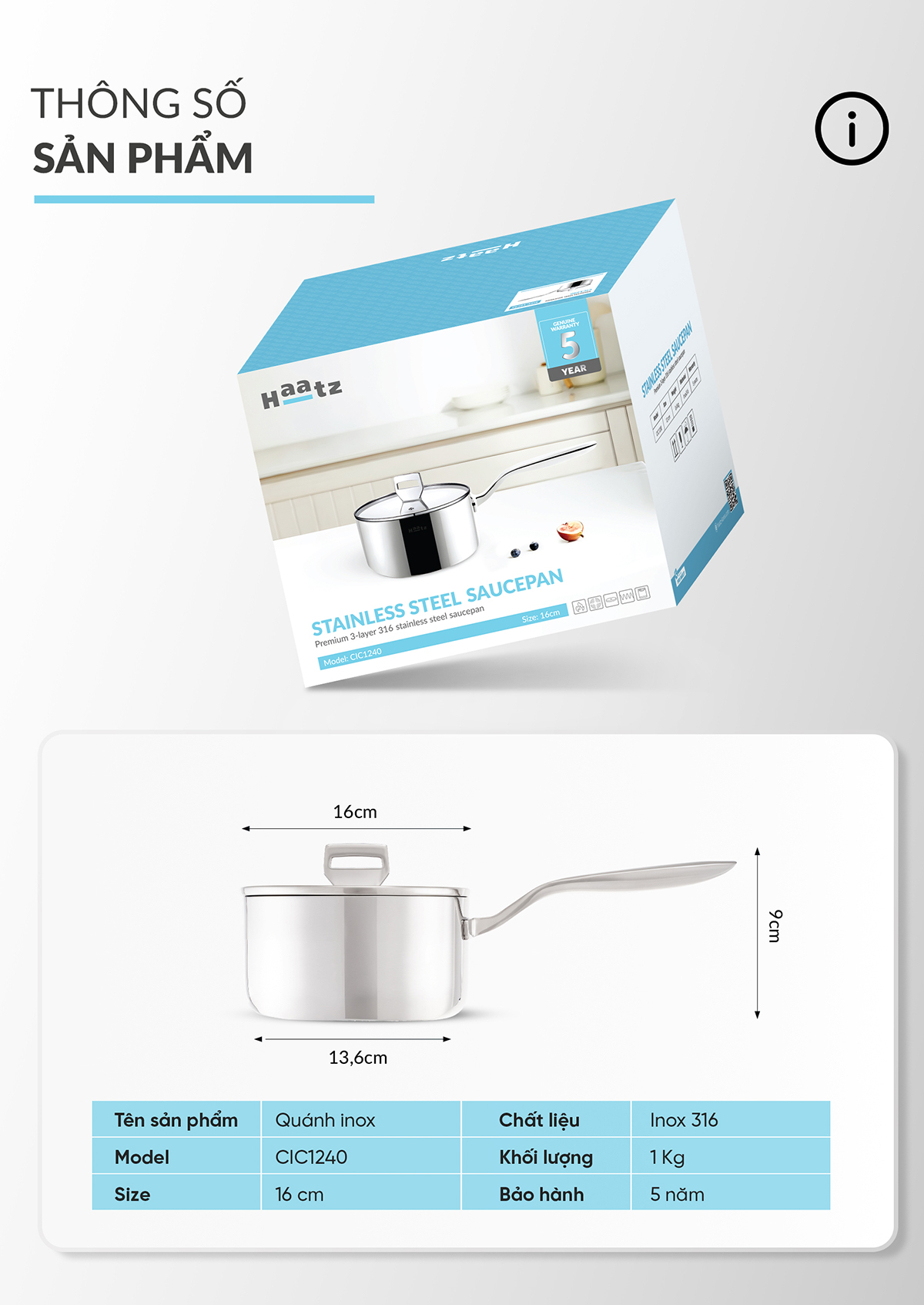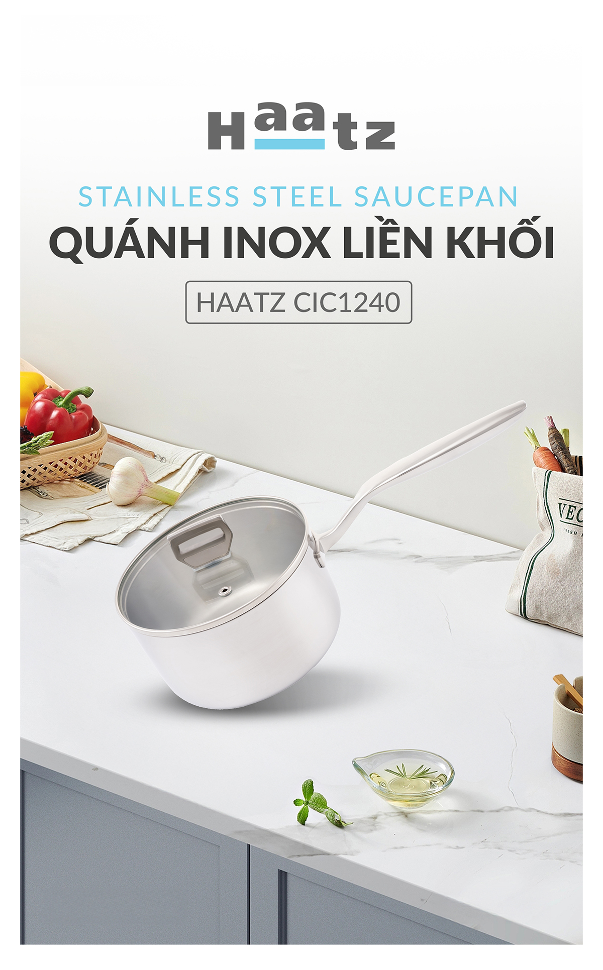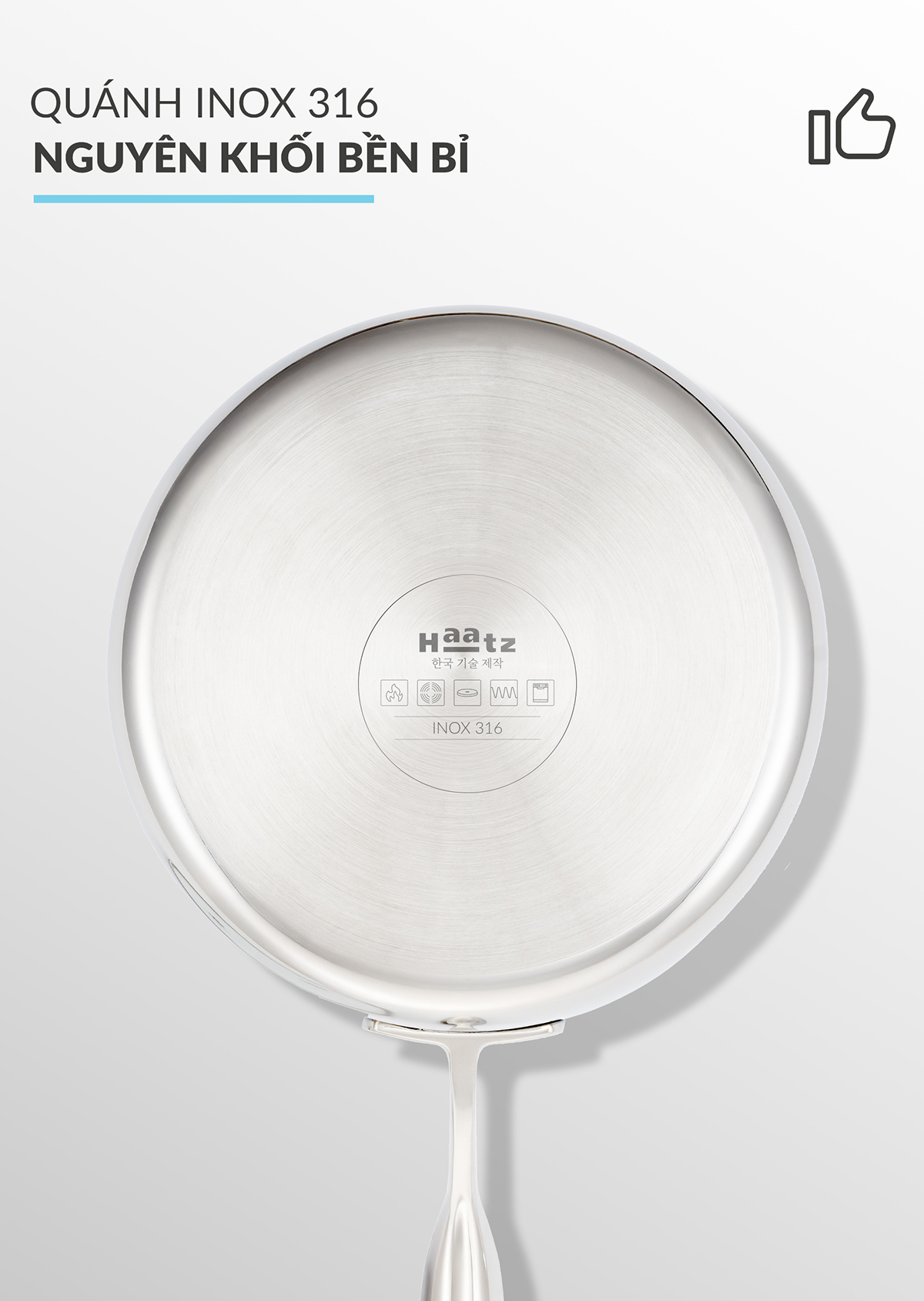Quánh inox 316 đúc liền khối Haatz size 16cm| 18cm kèm vung kính dùng mọi loại bếp