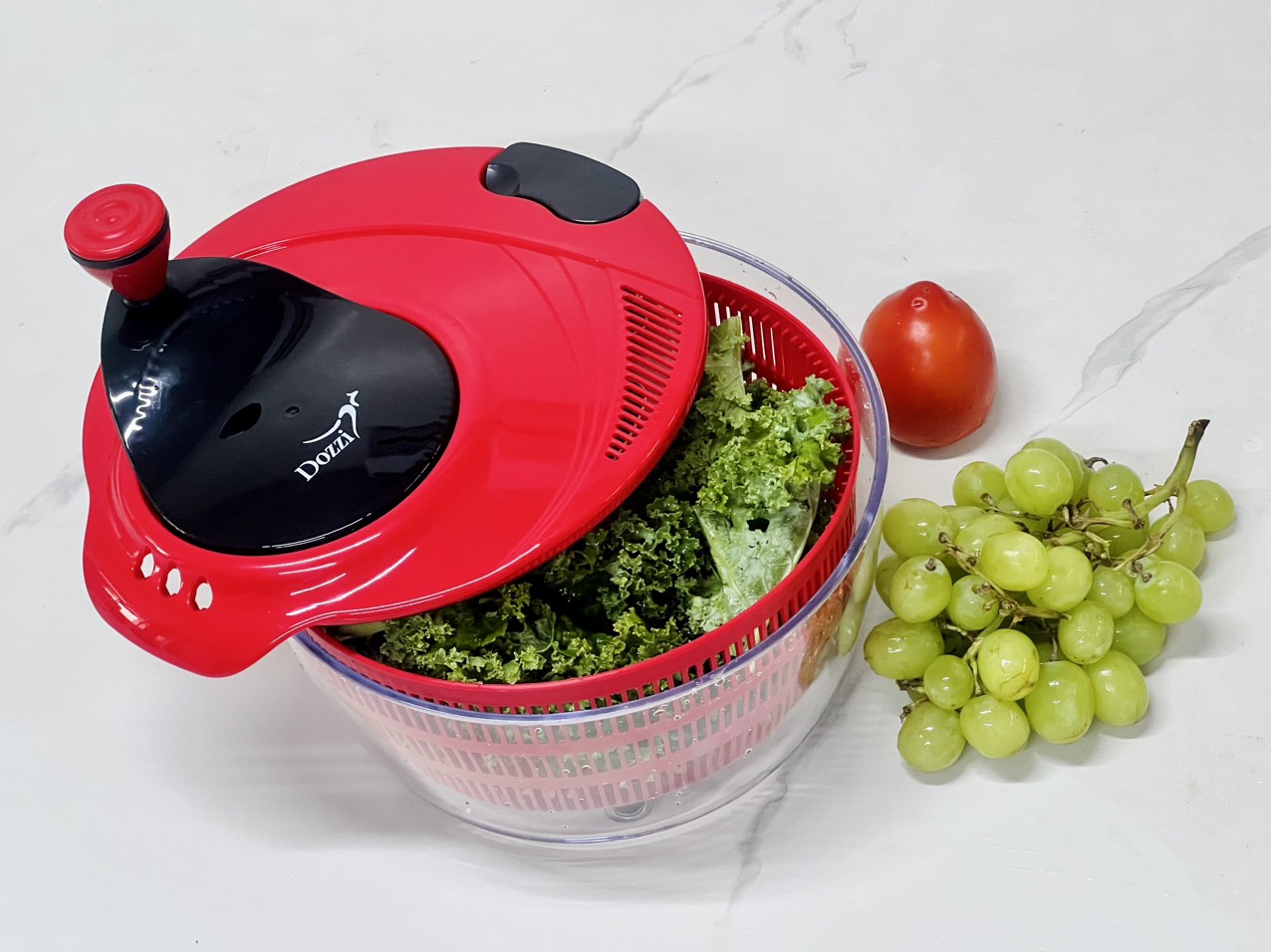 - Ưng nhất ở em này là cái tay cầm, rất dễ thao tác mà truyền lực đỉnh luôn. Cả quay vắt rau lẫn rửa hoa quả đều nhẹ tênh. Tiếp đến là móc cài giúp khi quay không bị văng hay bắn rau hoặc hoa quả ra ngoài như các loại rổ quay rau khác.
