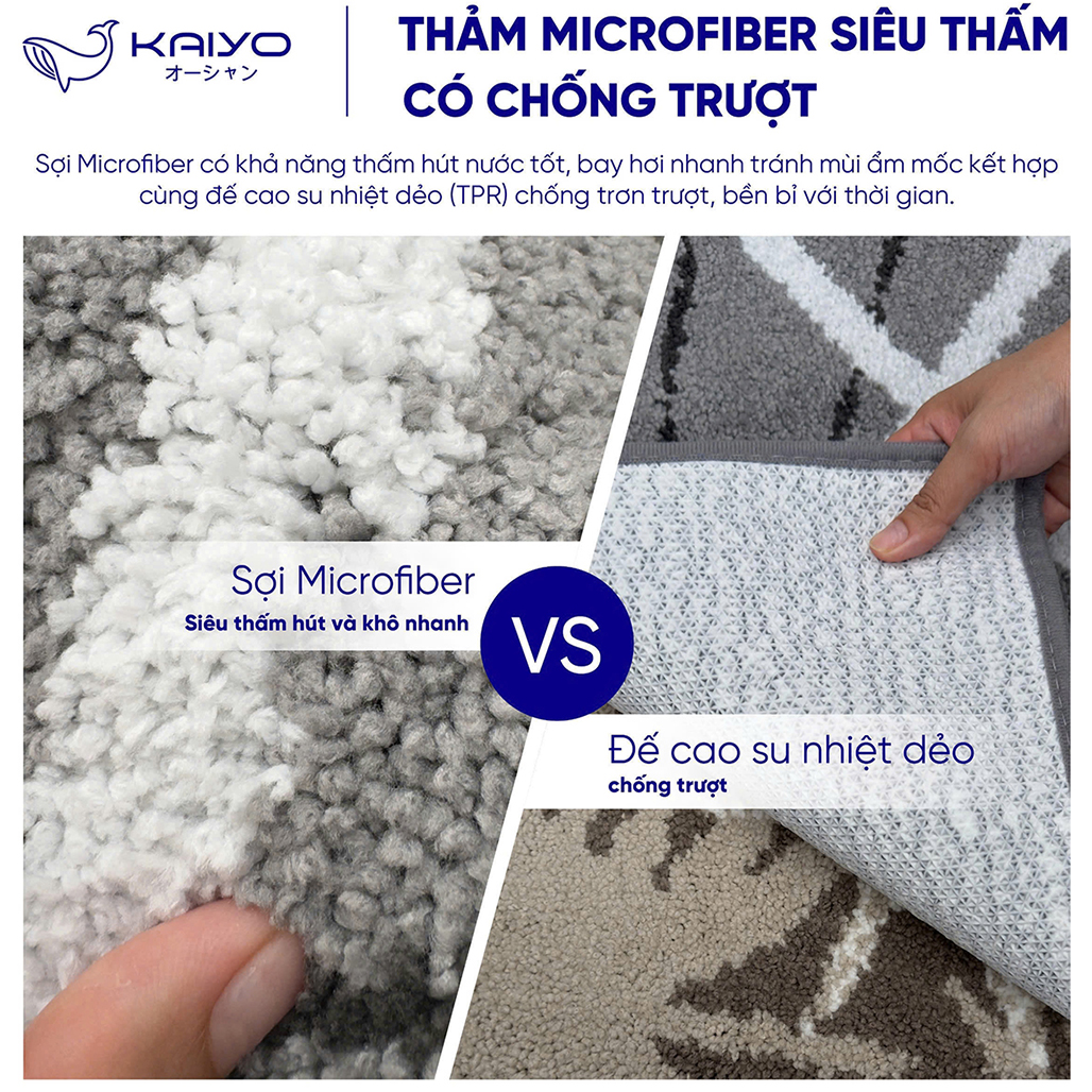 Thảm KAIYO microfiber cao cấp siêu thấm và siêu bền dùng phòng khách, phòng ngủ, nhà bếp, nhà tắm